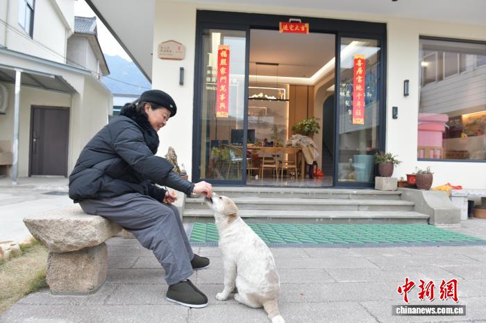 2月9日,安徽省池州市青阳县一家民宿内,民宿主人喂宠物吃东西。中新社记者 储玮玮 摄