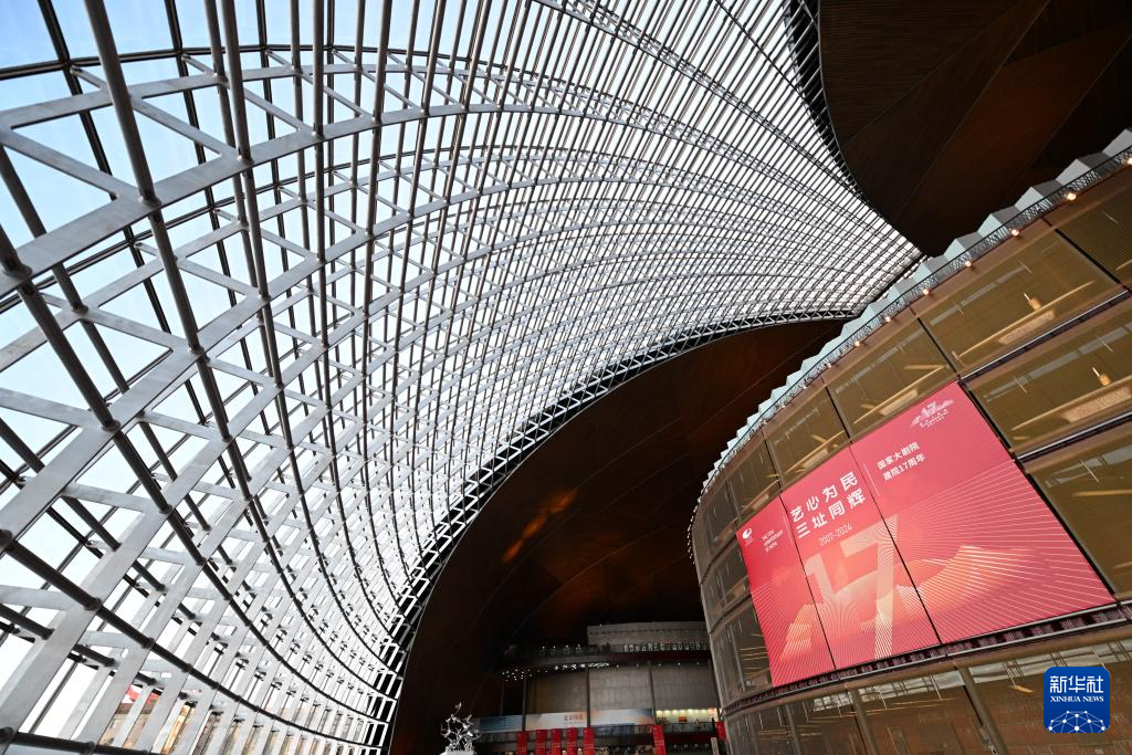 12月22日拍摄的国家大剧院建院17周年巨幅海报。
