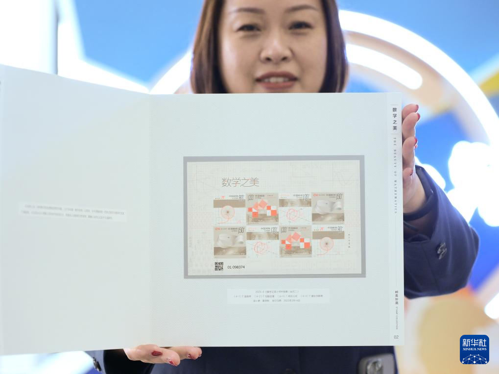 3月14日,邮政工作人员在活动现场展示《数学之美》特种邮票。