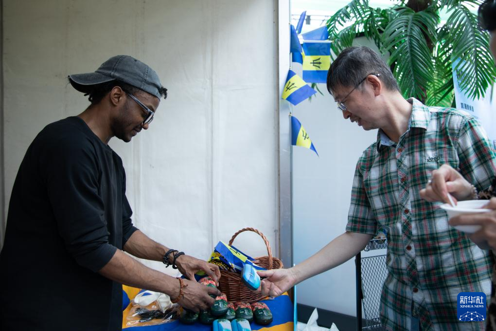 6月15日,一名参观者(右)在2025年加勒比文化体验活动上查看纪念品。