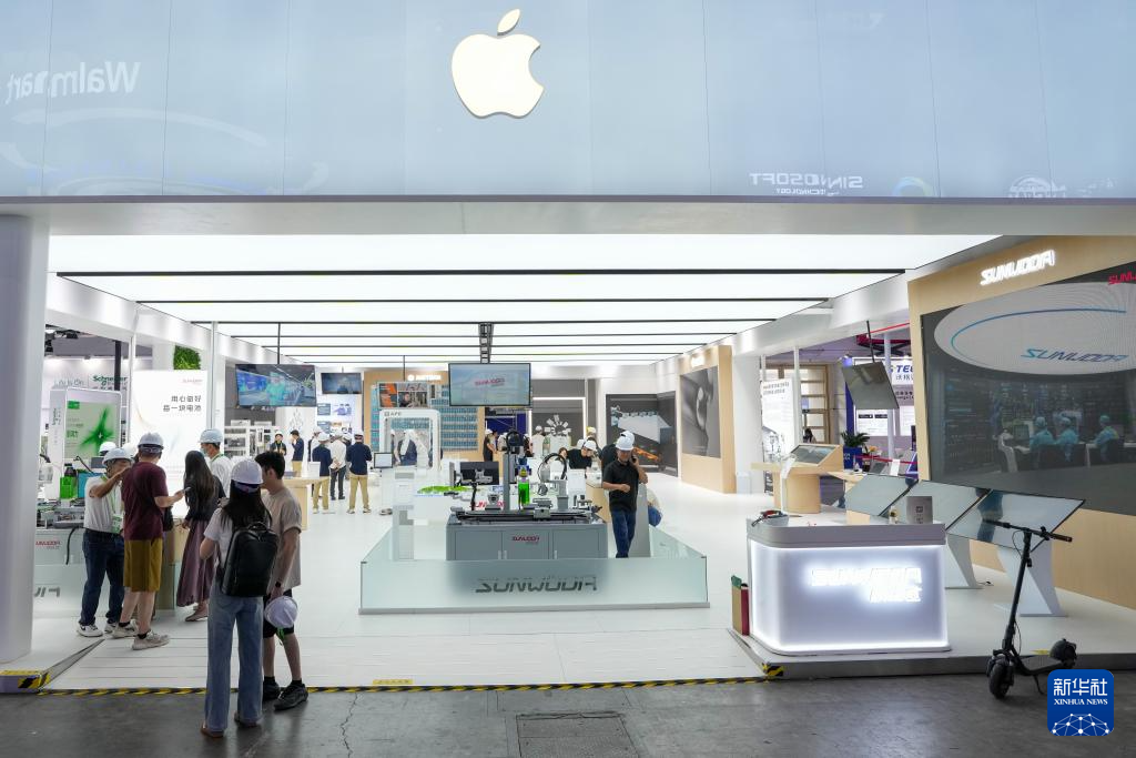 7月14日在第三届中国国际供应链促进博览会数字科技链展区拍摄的苹果供应链展位。