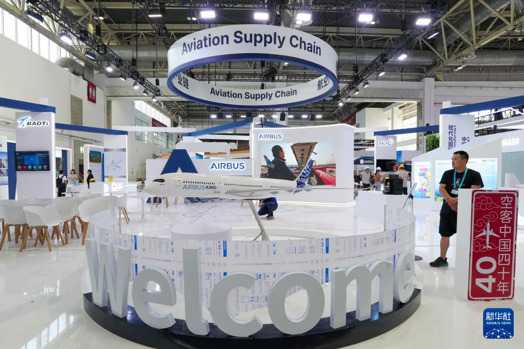 7月14日在第三届中国国际供应链促进博览会先进制造链展区拍摄的航空产业链展位。