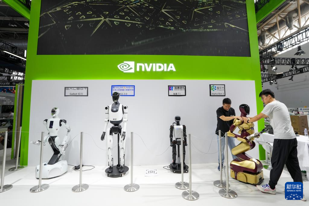 7月14日,在第三届中国国际供应链促进博览会数字科技链展区英伟达公司展位,工作人员在布置展品。