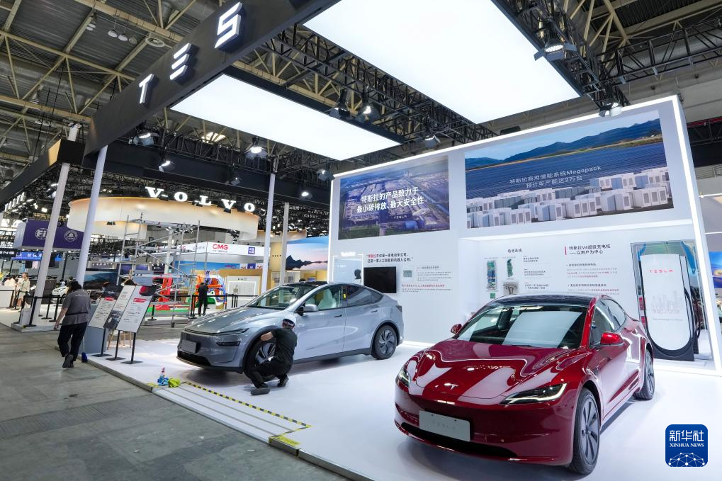 7月14日在第三届中国国际供应链促进博览会智能汽车链展区拍摄的特斯拉展位。