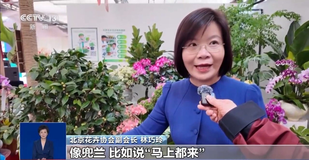 北京花卉协会副会长林巧玲:马年推出马主题花器,同时配合不同的花材,像兜兰,比如说“马上都来”“幸福都来”“快乐都来”。富贵子,红色配非常好看和吉祥,“马上富贵”又很吉祥。