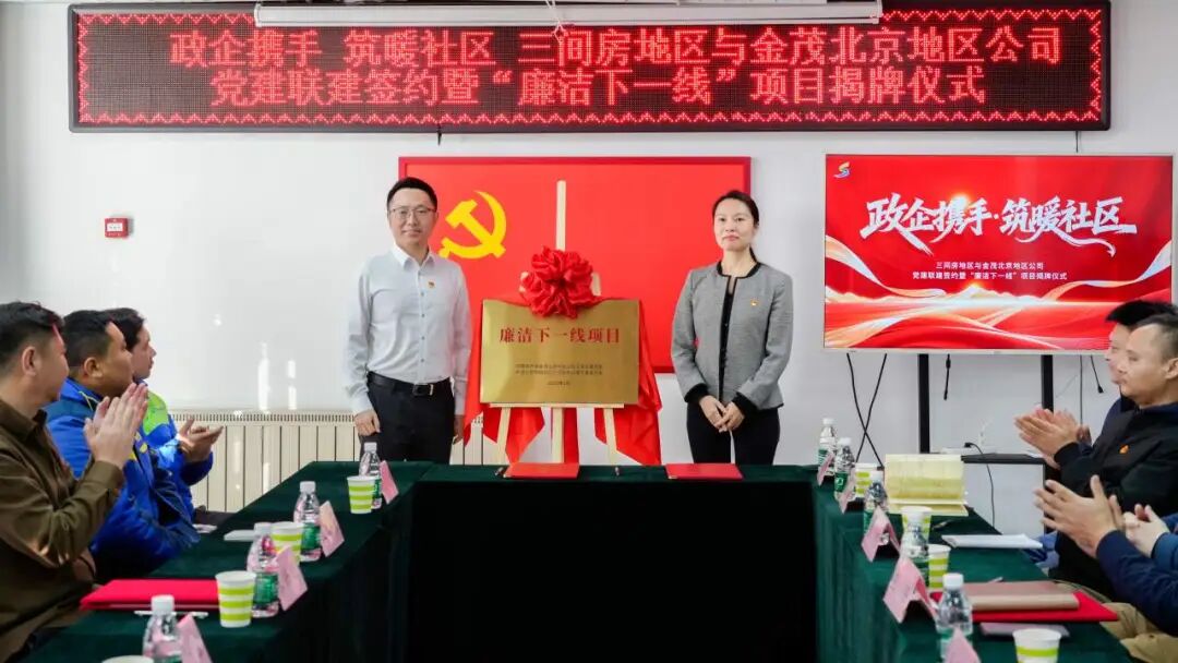 此次政企共建,是三间房地区探索基层治理新模式、汇聚发展新合力的重要实践,也是金茂北京地区公司践行社会责任、深耕地方发展的具体体现。未来,双方将以此次签约为起点,以廉洁建设为纽带,以社区需求为导向,秉持优势互补、资源共享、互利共赢、服务民生的原则,推动“廉洁下一线”项目走深走实,切实将政企共建的成果转化为基层治理的实效、惠及民生的实效,共同打造政企共建新典范,携手筑就温暖宜居、共治共享的幸福社区。