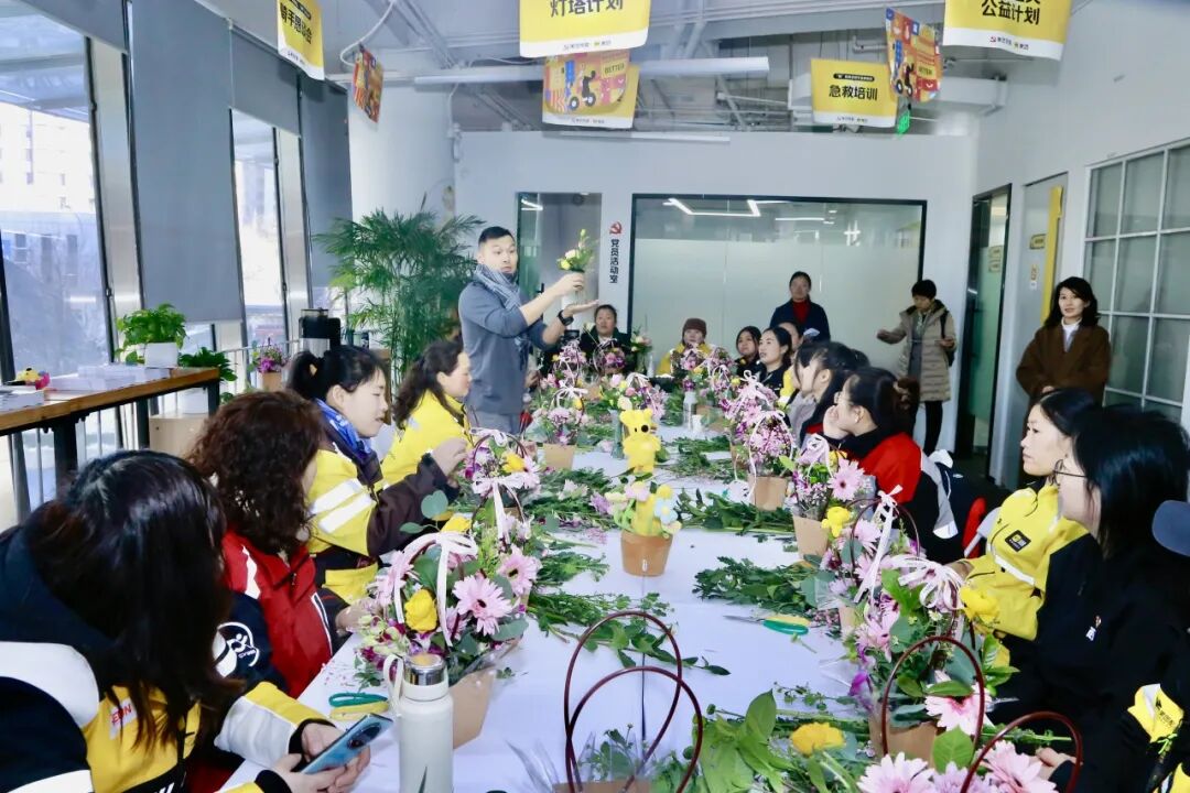 温馨的谈笑声与馥郁的花香萦绕在插花制作互动角周围。新就业群体姐妹们围坐在长桌边,在花艺老师的指导下,一边认真修枝剪叶,一边开心地分享工作感受、生活点滴。女主播刘婧说:“此次活动不仅提供了放松身心、陶冶情操的机会,也为我们搭建了跨行业交流互鉴、互相学习的平台。我会从姐妹们身上汲取智慧与力量,在今后的工作中继续逐光而行、奋斗追梦。”“能跟不同行业的姐妹聚在一起很难得。看到她们的笑脸,我也很受感染,心情很愉快!在这次活动里‘充满电’‘加好油’,开车更有劲头了。”网约车女司机王改菊说。