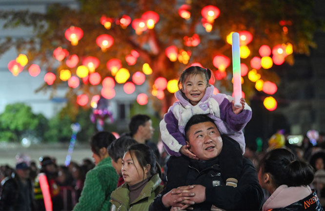 ▲2月24日,荣昌区远觉镇铁花广场,村民正在观看节目表演。