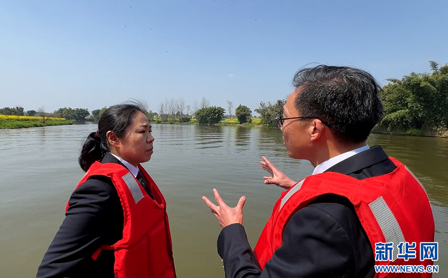 3月21日,川渝河长在琼江上开展联合巡河。新华网 韩梦霖摄