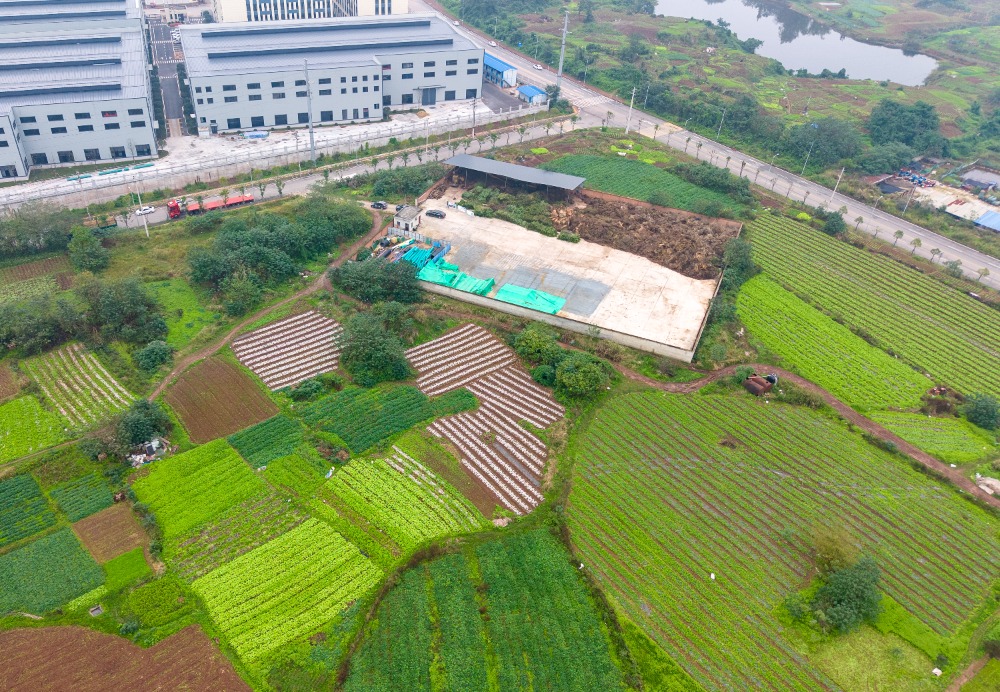 ▲2024年11月22日,鸟瞰重庆市双桥经开区秸秆及绿化有机废弃物资源化利用场。记者 李雨恒 摄