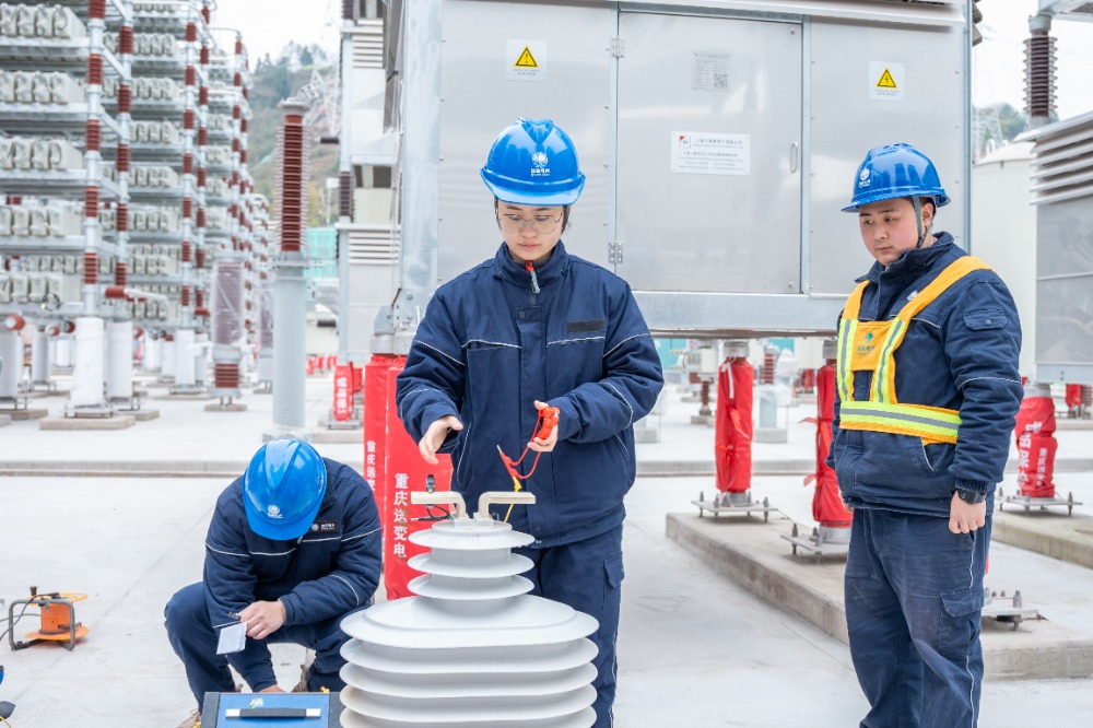 ▲2月11日,作业人员在渝北换流站交流场进行500千伏电流互感器一次通流试验前接线。通讯员 曾雪 摄