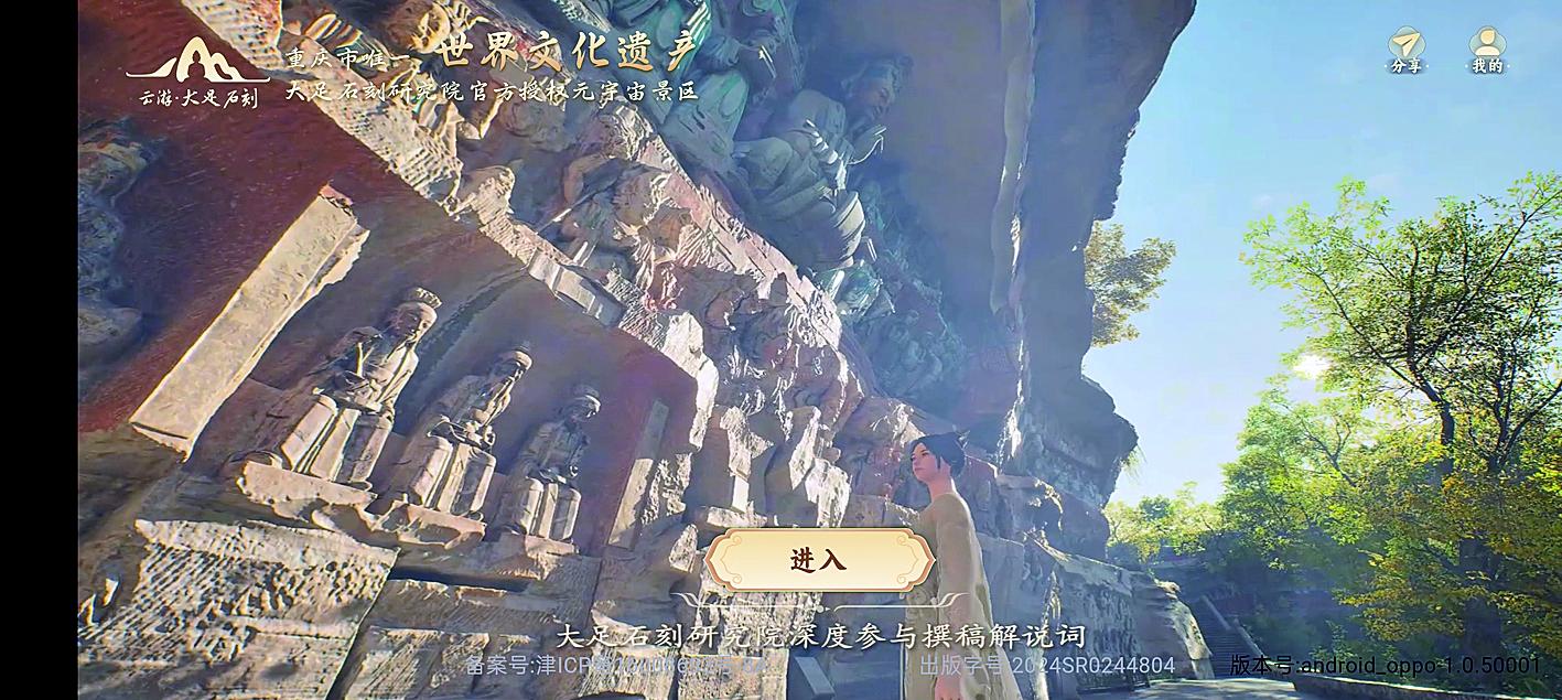 为增加游览的层次,石刻还进入了电脑、手机端。2024年5月,“云游·大足石刻”元宇宙景区APP正式上线,成为数字化呈现大足石刻景区面貌的新产品,千年石刻又一次焕发出了活力。