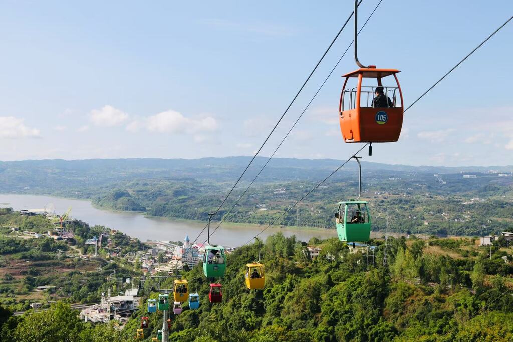 “每年暑假,景区都会迎来众多学生游客。”重庆美心红酒小镇相关负责人告诉记者,景区打造的索道环线特别受到年轻人追捧。该环线全长近10公里,由9条不同风格的索道线首尾串联成环,融合了吊椅式、吊厢式、吊篮式、飞鹰滑翔式、飞行屋等多种索道形式,将鸡公山游乐园、生态葡萄园、梨园生态水库、红酒庄园等多元美景串联,打造出别具特色的“移动观景台” 。