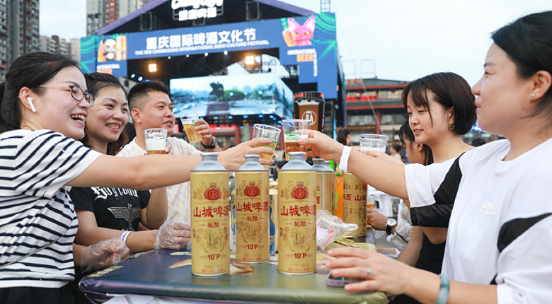 2025不夜重庆生活节,市民畅饮山城啤酒。第1眼TV-华龙网首席记者 李文科 摄