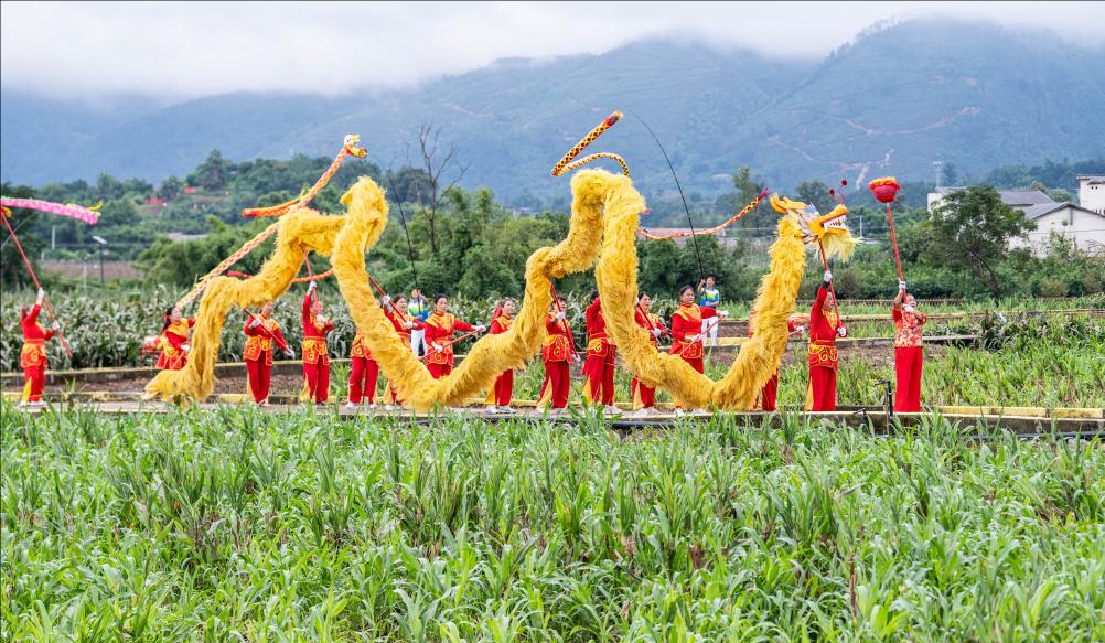9月29日,村民在田间载歌载舞。新华社记者 唐奕 摄
