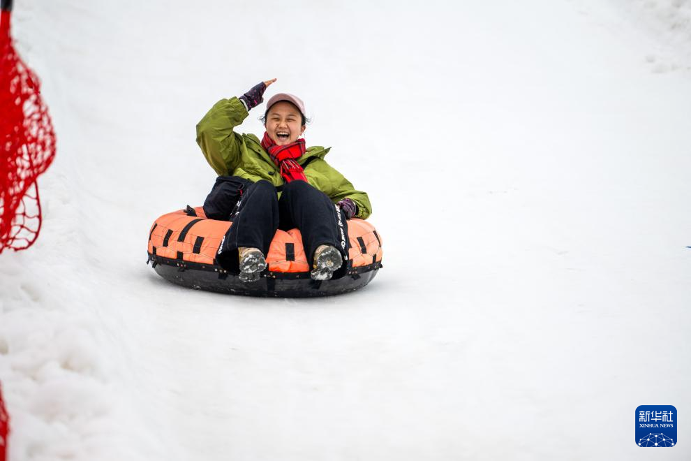 1月30日,游客在冰雪嘉年华活动上体验雪上运动。
