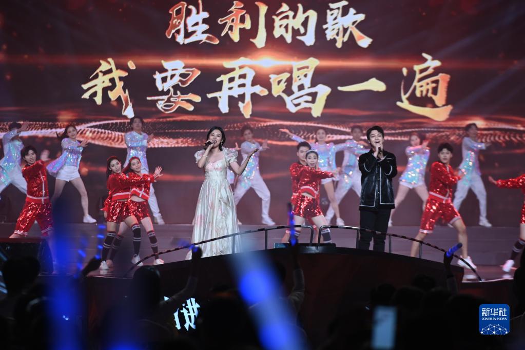 3月26日,当选为第十一届中国大学生电视节青春代言人的秦俊杰(右)和沈梦辰在演唱歌曲《我们的歌》。