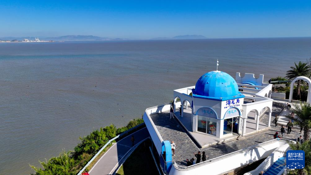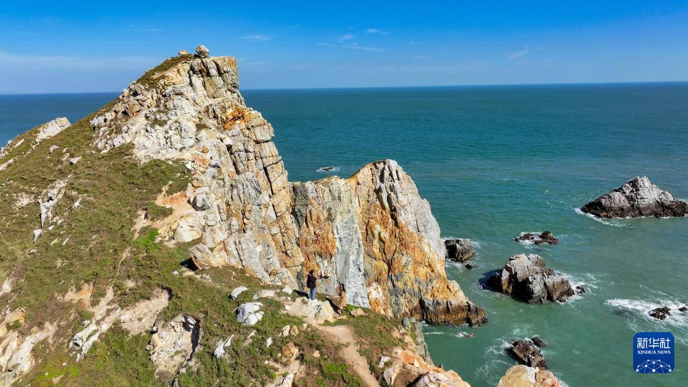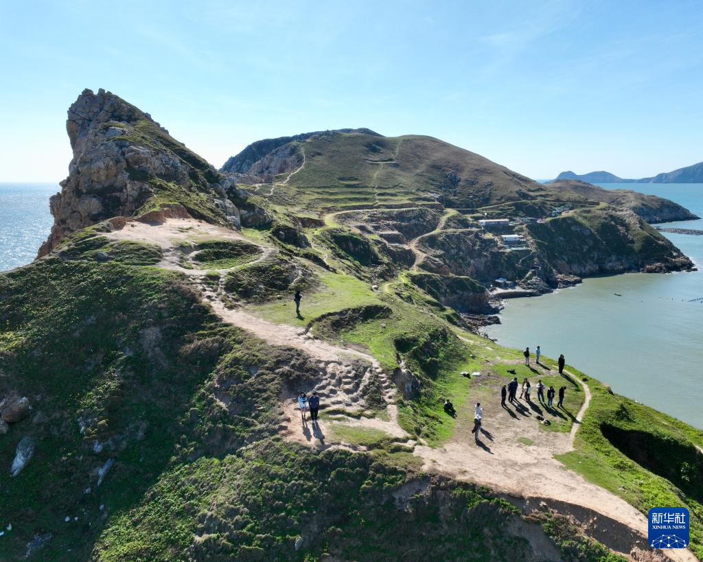 11月30日,游客在霞浦县“东海1号”观光道上的海尾角景点游玩(无人机照片)。