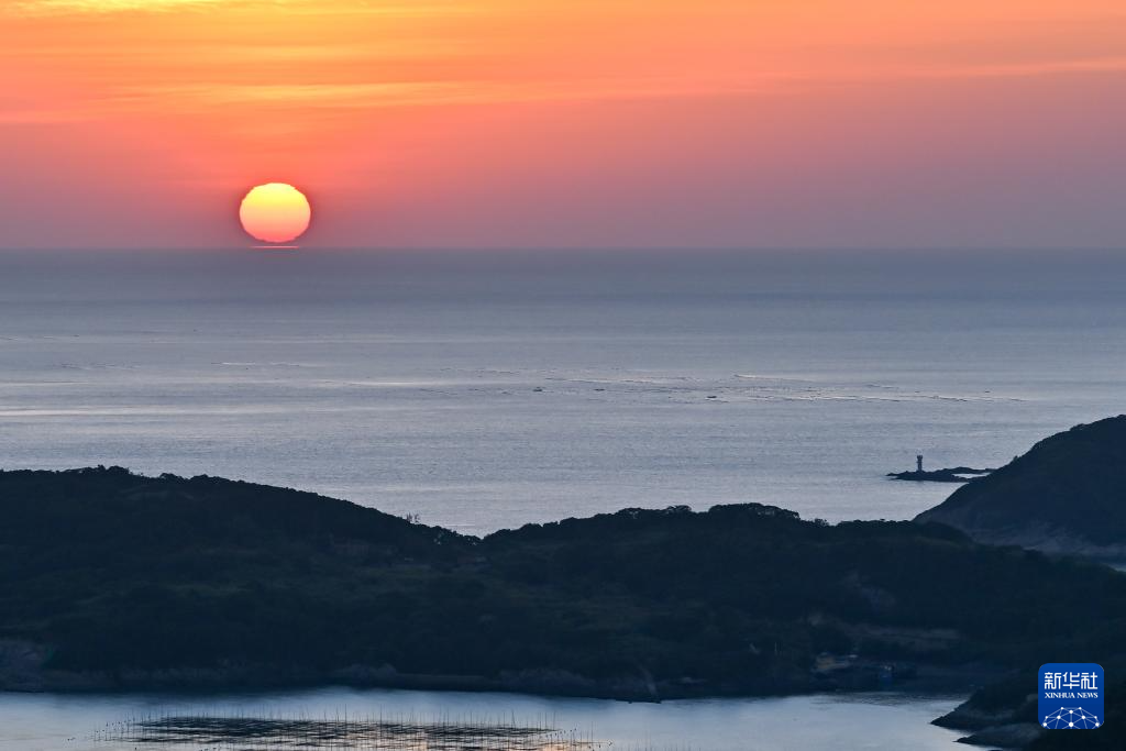 11月29日,游客在霞浦县三沙镇花竹村观赏日出(无人机照片)。