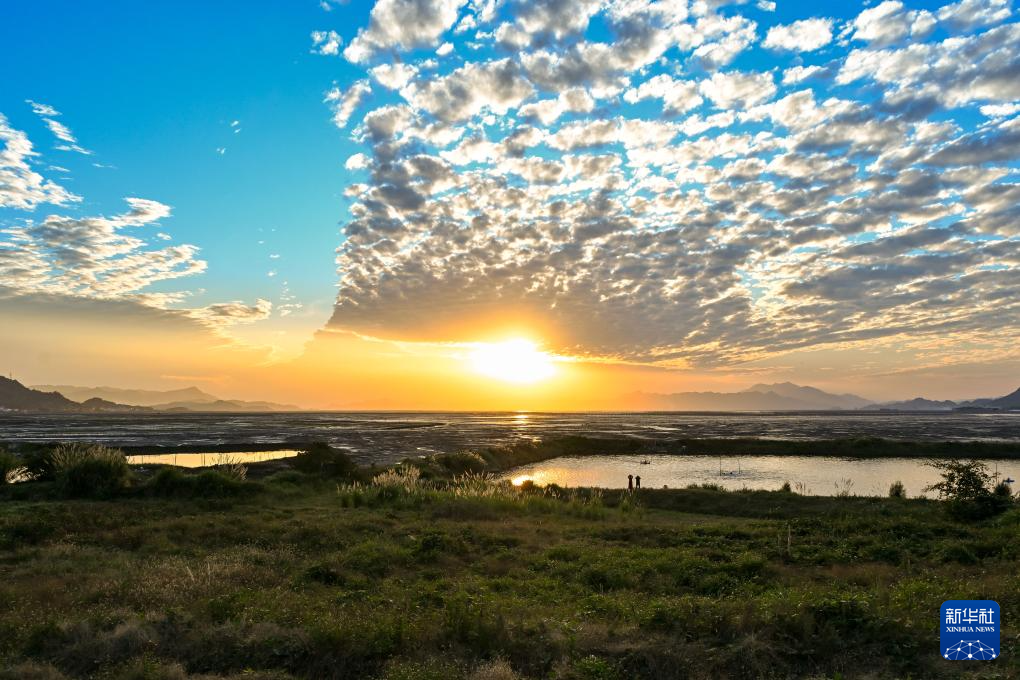 这是在霞浦县长春镇冬瓜山摄影赶海基地拍摄的落日景色(11月30日摄)。