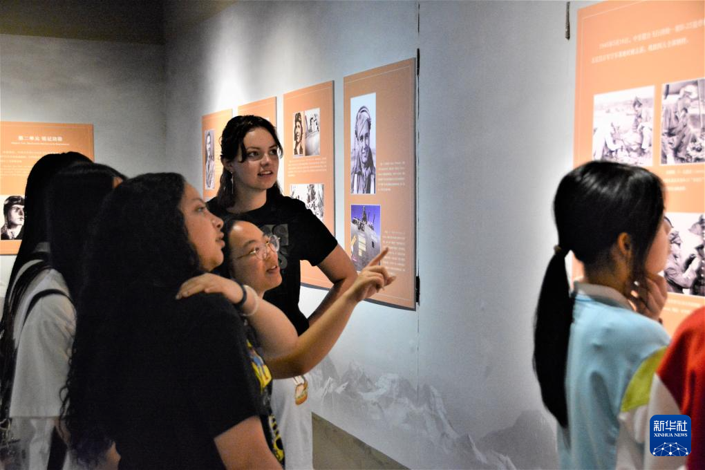 6月24日,在闽外国留学生在参观“铭记英雄——飞虎队主题历史图片展”。