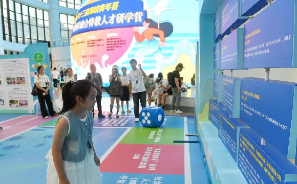 8月5日,福州市科技馆的小观众通过现场互动闯关游戏学习心智障碍相关知识。