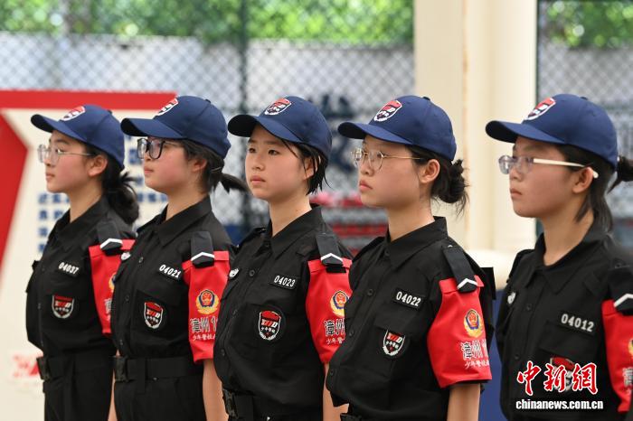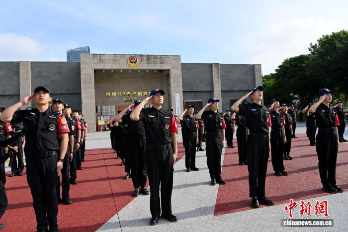 8月11日上午,位于福建省漳州市龙文区的“漳州110”忠诚馆广场上,一抹亮色引人注目——“漳州110”少年警校全体学员队列齐整,目光如炬。伴随着庄严的国歌声,鲜艳的五星红旗冉冉升起,43名少先队员代表穿上带有独立编号的专属“校服”,精神昂扬,正式开启为期4天的“忠诚、勇毅、自强、笃行”之旅。图为“漳州110”少年警校全体学员队列齐整,目光如炬。中新社记者张金川 摄
