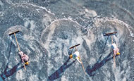 林秀琴告诉记者,食用盐生产不同于工业盐,不能机械收盐,只能人工收集。为了确保盐的品质,盐工们需要在日出之前将盐收集完毕,为此,他们通常需要在凌晨1、2点便开始工作。