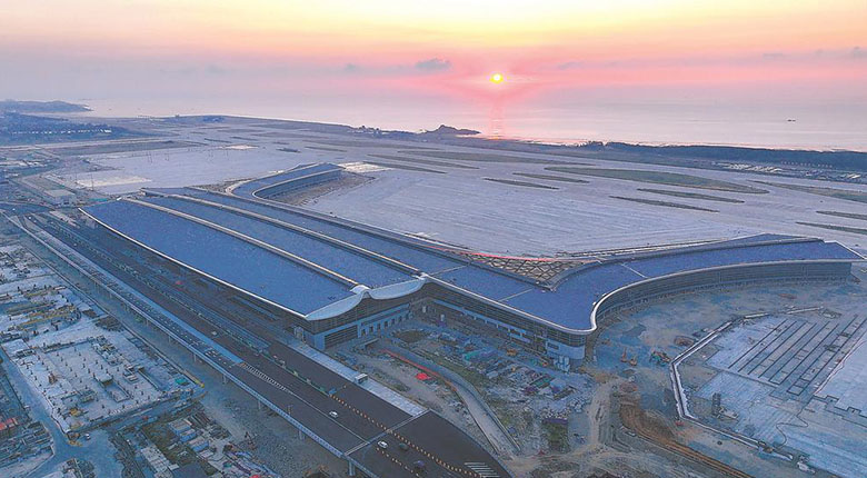 该项目是全省首个“零换乘”立体综合交通枢纽,真正实现“空铁无缝衔接”。其中,T2航站楼采用双指廊构型,显著缩短旅客步行距离;十字轴线贯通航站楼、交通中心等核心功能区,实现“步行可达、高效换乘”。