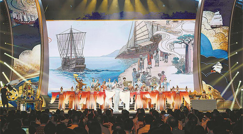 26日晚,第十二届丝绸之路国际电影节颁奖典礼在福州海峡奥体中心举行。颁奖典礼融合“一带一路”主题与闽都文化元素,呈现了一场贯通古今、连接中外的视听盛宴。文艺表演环节中,黄龄以融合戏曲腔调的开场歌舞《海丝万域·和鸣共盛》展现文化传承,杭盖乐队通过民族音乐与现代编曲的融合传递中国音乐魅力,多位中外歌手联袂演绎经典曲目。