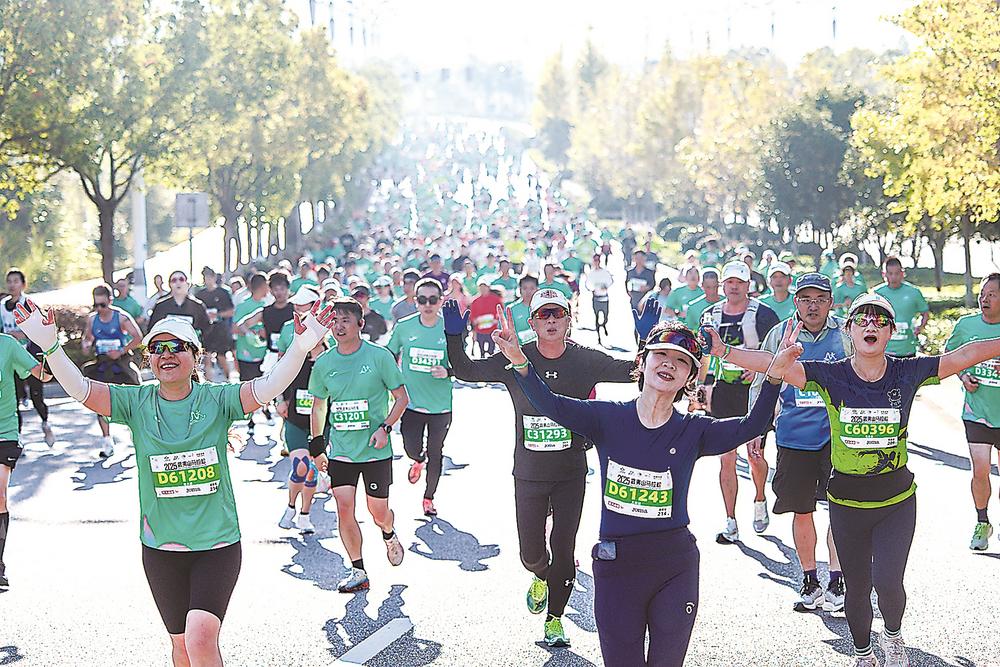 23日,2025武夷山马拉松在武夷山市鸣枪开跑。来自全国各地的跑者迎着初冬的暖阳,开启一场穿行在丹霞碧水间的奔跑旅程。