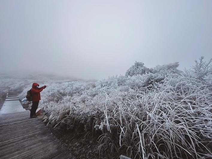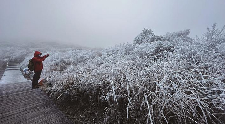 受强冷空气影响,1月2日,福建省建宁县金铙山景区迎来新年首场雾凇景观。漫山晶莹剔透,草木凝霜挂玉,宛如一派冰洁梦幻的仙境,吸引游客登高赏景、拍照留念。