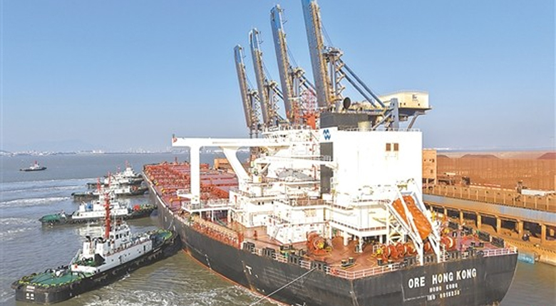 图为长362米、宽65米的“矿石香港”轮靠泊罗屿作业区9号泊位。全媒体记者 林罗晓 摄