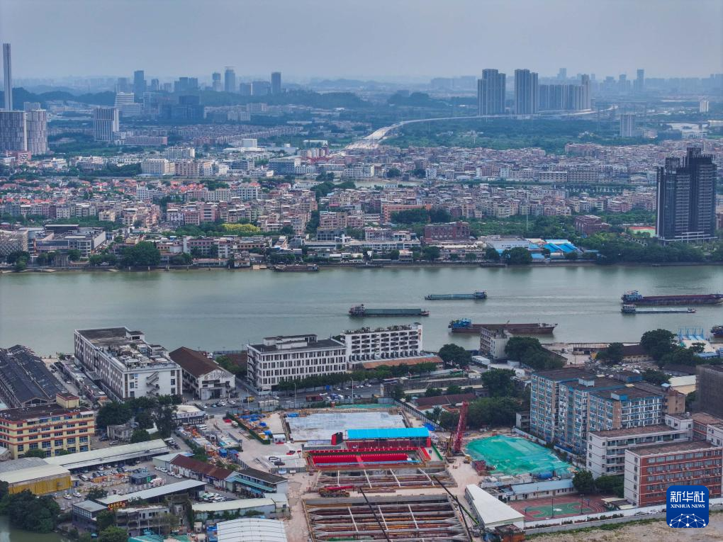 7月15日,广州海珠湾隧道两台15.07米超大直径盾构机下穿珠江水道和洛溪岛,实现双洞贯通(无人机照片)。