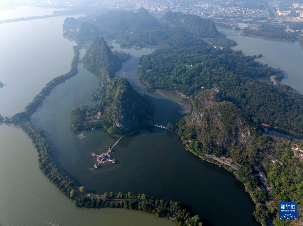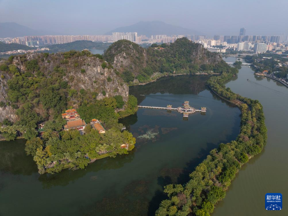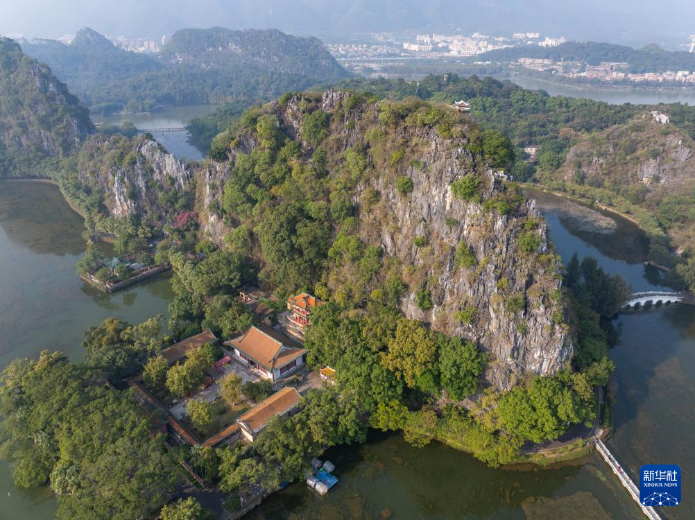 这是12月2日拍摄的肇庆七星岩景区(无人机照片)。