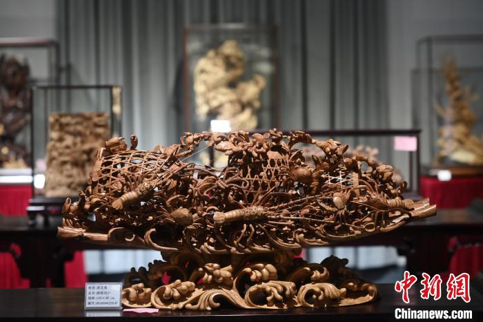 3月17日,广东省潮州市,辜柳希木雕精品馆展示的潮州木雕《满载而归》。中新社记者 陈楚红 摄