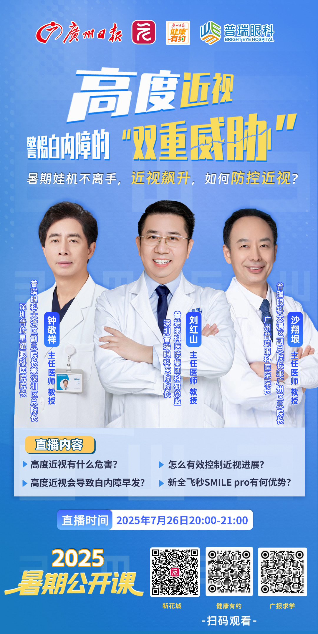暑期孩子放假在家,不少孩子“机”不离手,沉迷电子产品,视力问题成了家长最大的焦虑。7月26日,广州日报联合普瑞眼科推出暑期公开课第二讲,聚焦“近视防控”与“眼健康前沿技术”,为大家的眼健康保驾护航。直播一经推出,深受广大市民的关注,下面让我们一起来听听他们说了什么吧!