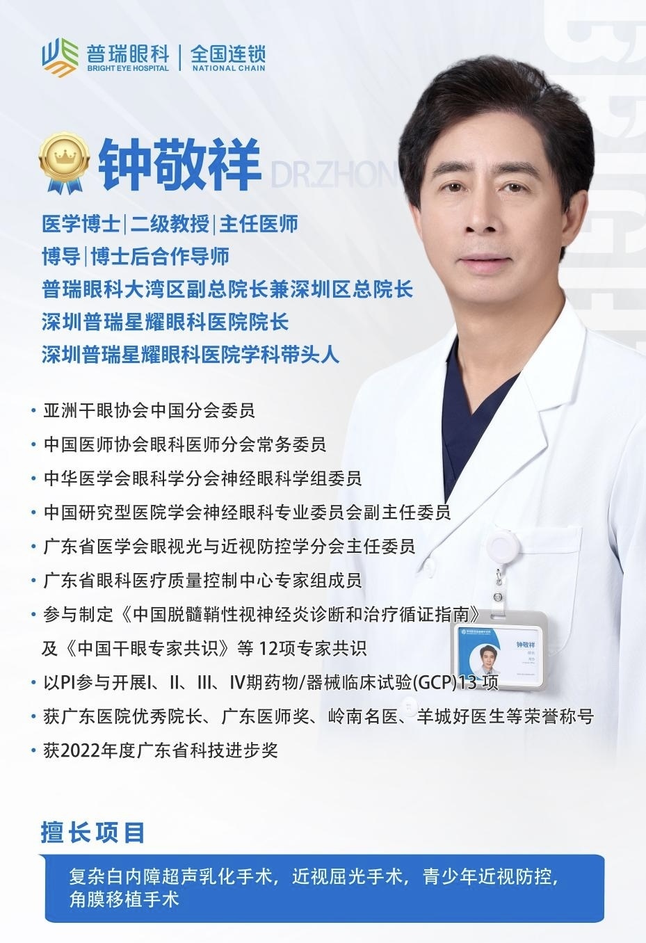 普瑞眼科大湾区副总院长兼深圳区总院长、深圳普瑞星耀眼科医院院长钟敬祥主任医师、教授