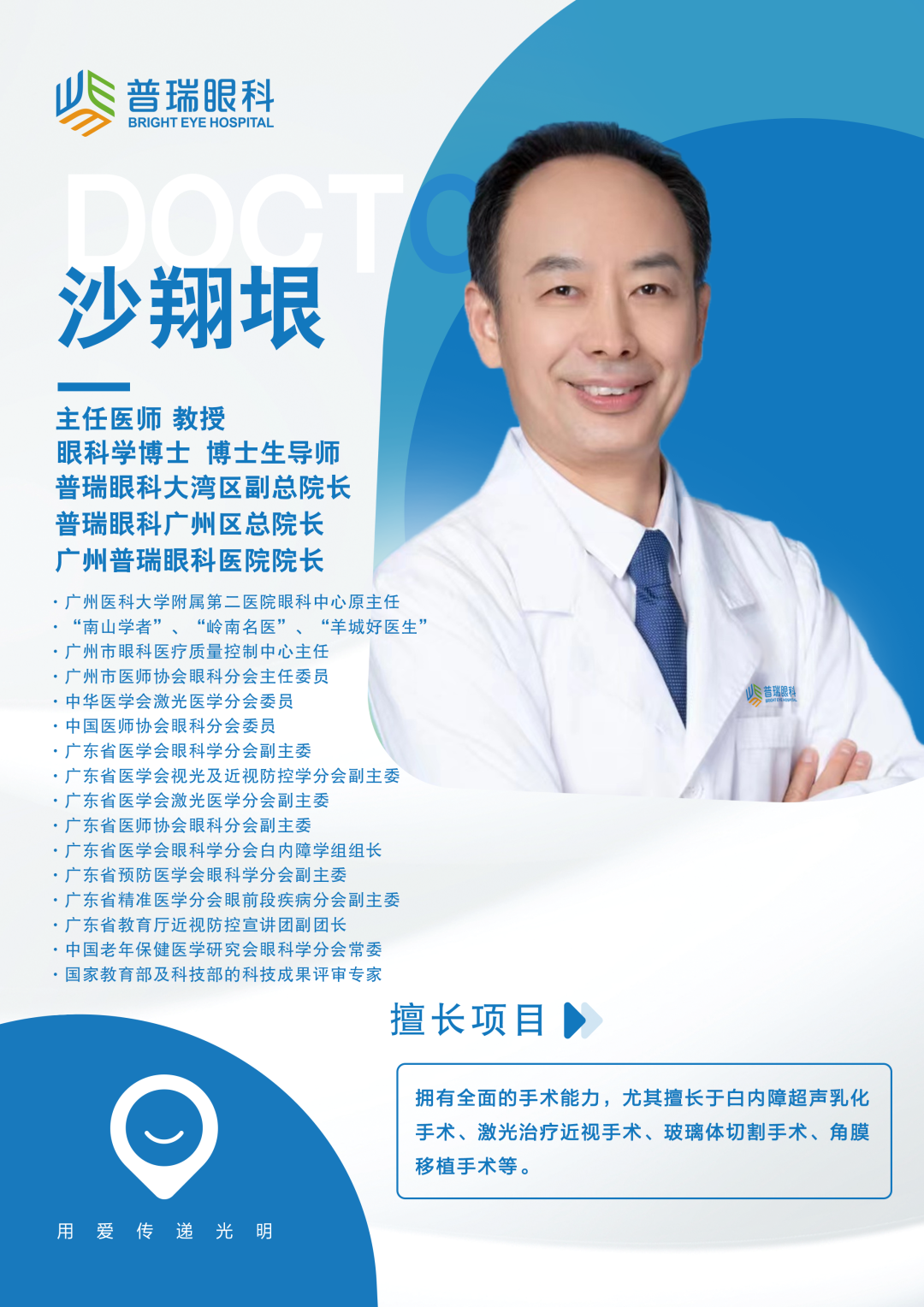 普瑞眼科大湾区副总院长兼广州区总院长、广州普瑞眼科医院院长沙翔垠主任医师、教授