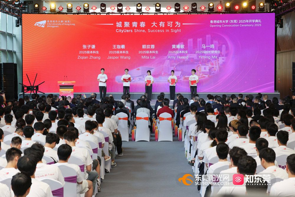 活动现场,港城大(东莞)图书馆正式启用,标志着港城大(东莞)一期校园全面启用。5位新生代表分别从湾区精神、青年求知、文化桥梁、跨专业突破等视角,表达了对全面成长和多元校园文化的向往与认同。