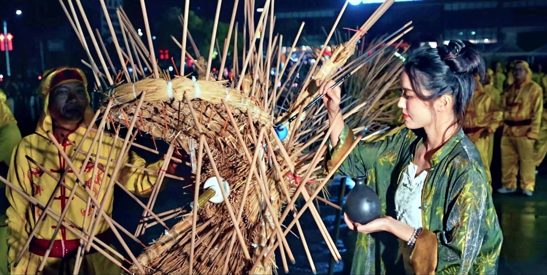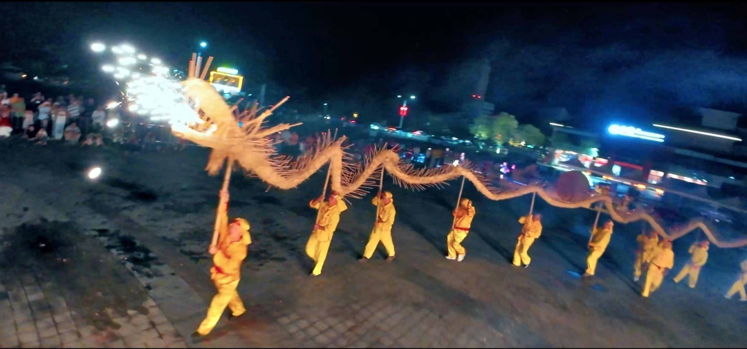 夜幕深处,一声锣响,沉寂被骤然打破。来自千年古村的非物质文化遗产“恩村香火龙”,在众人的簇拥下缓缓“苏醒”。这条由稻草精心编织而成的巨龙,周身插满了由村民和游客亲手点燃的万千香火。