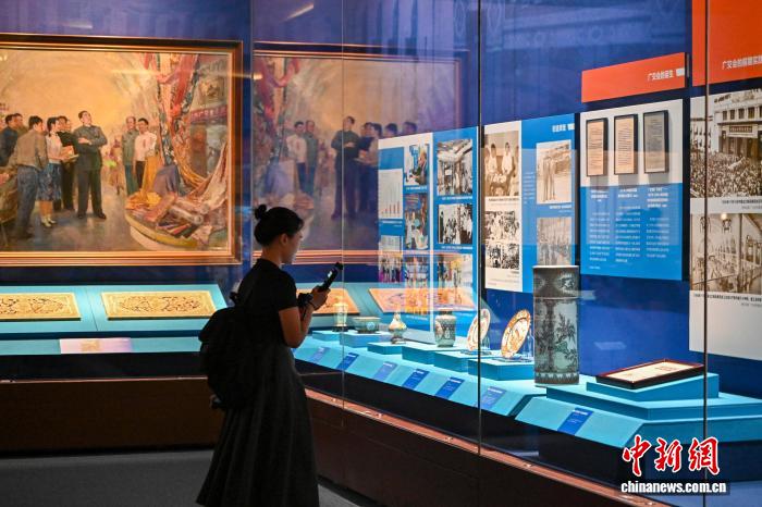 10月14日,“互利天下:广东外贸一千年”展览导赏活动在位于广州的广东省博物馆举行。本次展览以广东千年外贸发展脉络为主线,通过逾200件(套)文物实证与制度演进的双重叙事,全方位展现广东在中国对外贸易史上的独特地位与深远影响。展览将于10月15日正式对外开放。中新社记者陈骥旻 摄