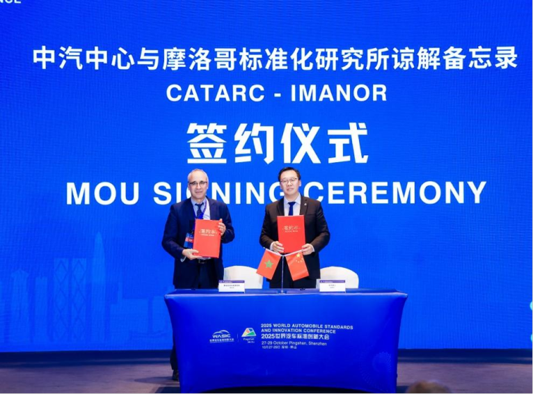 中汽中心与摩洛哥标准化研究所签署备忘录,双方将以“面向未来、平等合作、互惠互利”为原则,搭建两国汽车标准化技术合作交流平台,合作涵盖汽车标准化、汽车零部件认证、标准技术交流三大核心领域。