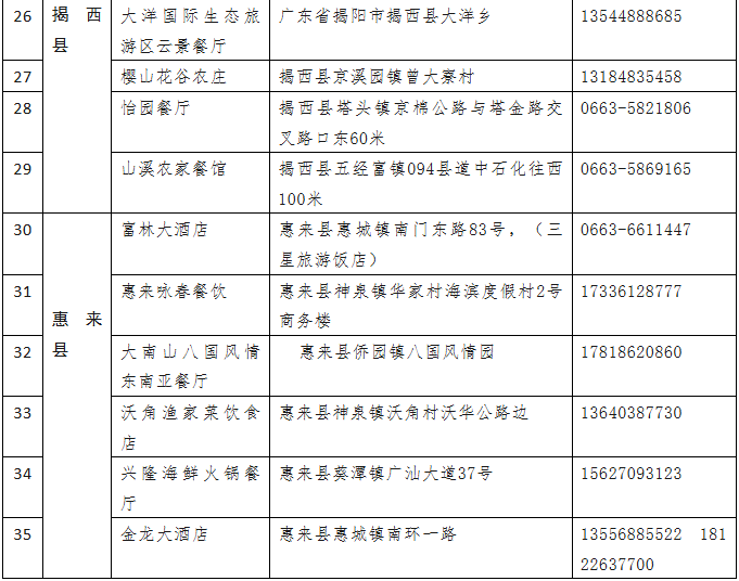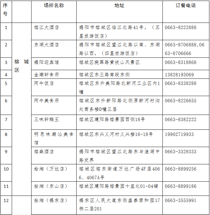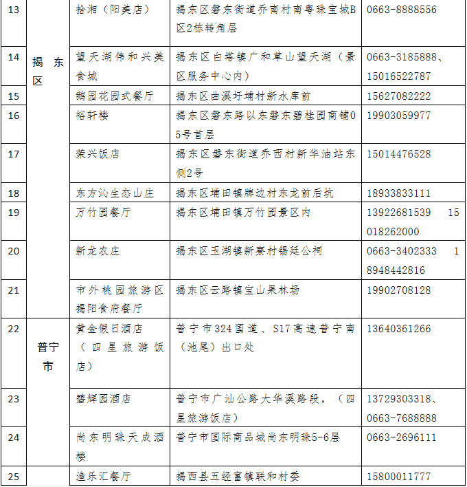 “揭阳市旅游团队用餐推荐单位”评定单位名单