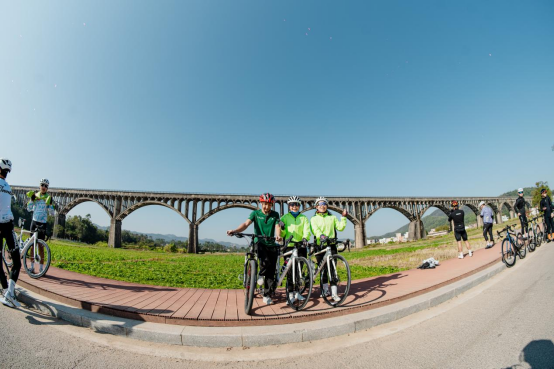 上午8时43分,全程挑战组、嘉宾组与亲子体验组依次出发,赛道如银线串联起罗定的“山水珍宝”与“文化密码”。骑手们在石牛山森林公园的林海中呼吸负氧离子,在金银湖国家湿地公园的波光里舒展身心,而长岗坡党员教育基地的AI智慧导览系统更带来惊喜——对着设备询问“渡槽建设历史”,0.03秒内便收到精准讲解,这种“走到哪听到哪”的沉浸式体验,让“北看红旗渠,南看长岗坡”的红色精神可感可触。“骑累了停下来学历史,这种体验比单纯观光更有意义。”来自佛山的骑手陈先生边操作导览设备边说道。