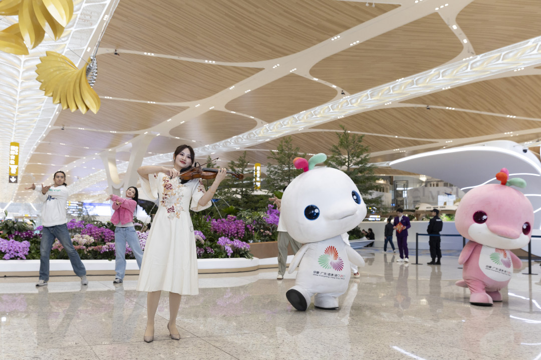 春潮涌动珠江岸,艺韵飞扬满花城。在2026年新春佳节即将来临之际,1月22日上午,一场别开生面的马年新春大湾鸡快闪活动在广州白云国际机场T3航站楼举办。文旅萌宠“大湾鸡”喜洋洋、乐融融和广州市属文艺院团的艺术家们给来往的市民、游客带来喜庆灵动的表演并送上新春祝福。