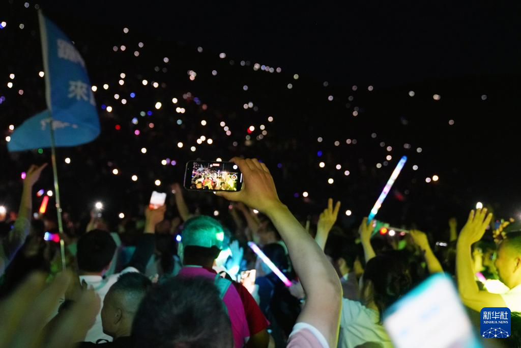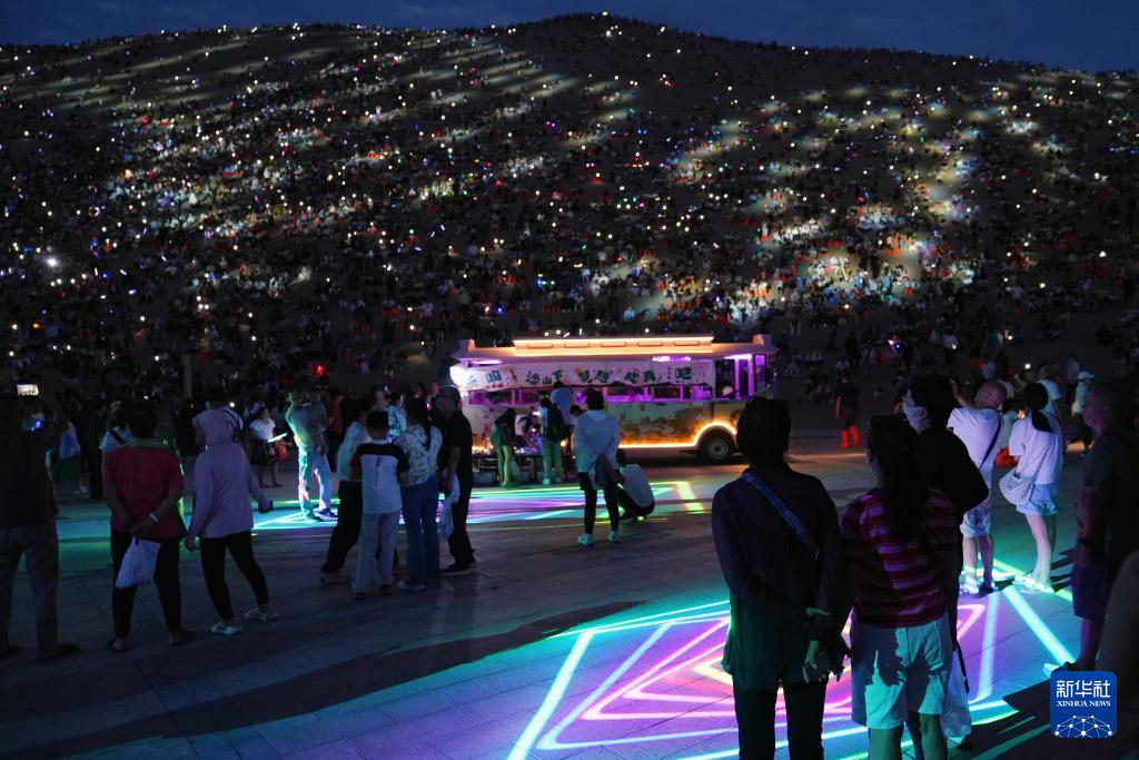 7月15日晚,游客在敦煌鸣沙山月牙泉景区参加万人星空演唱会。