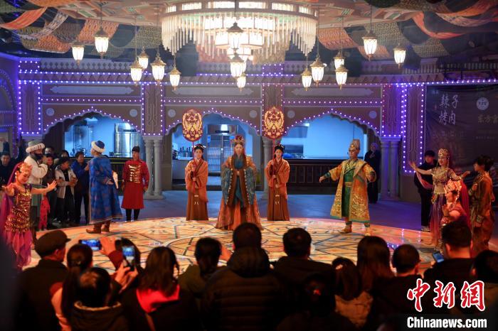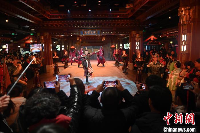 1月2日,甘肃省兰州市七里河区兰州中心《风起大汉》沉浸式演艺街区内,演职人员进行表演。中新社记者 李亚龙 摄