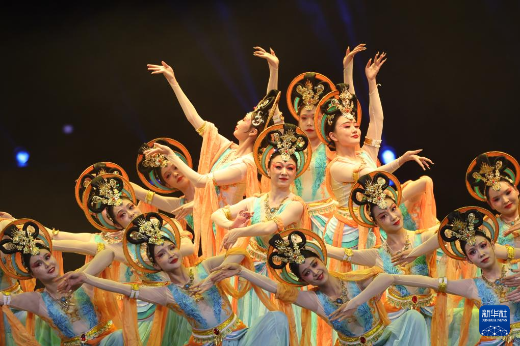 甘肃省酒泉市文化馆的演员在甘肃省群众文艺展演展播活动首场演出中表演敦煌舞(1月7日摄)。