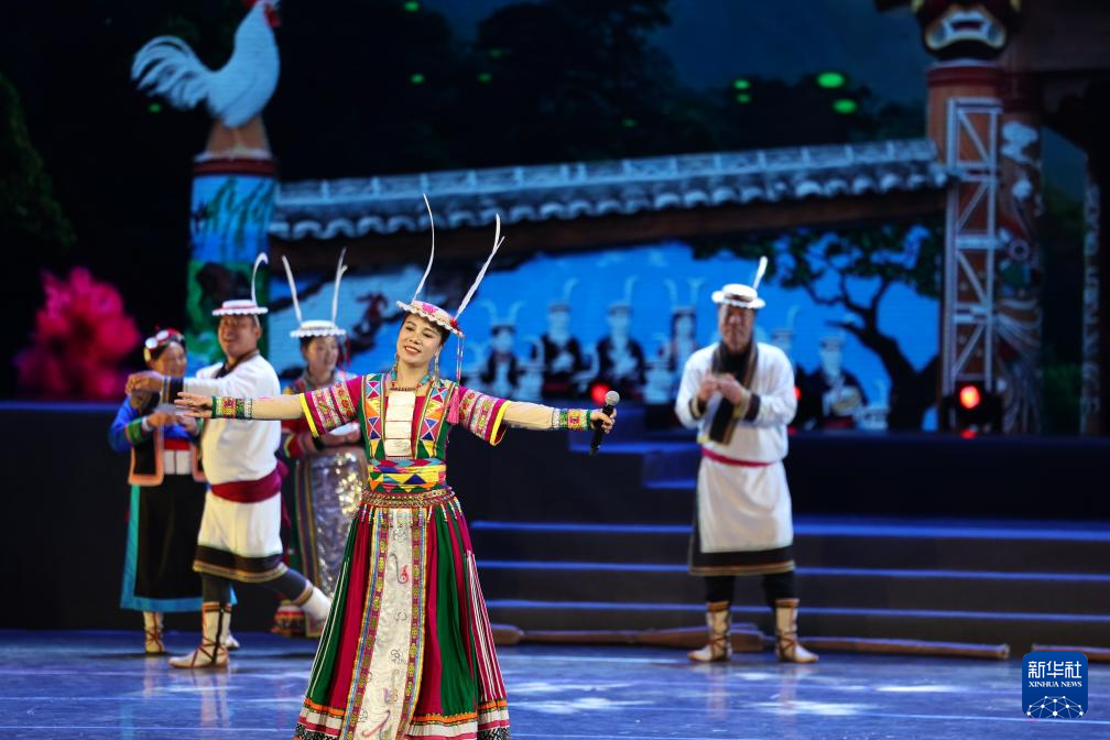 甘肃省陇南市文县白马人民俗文化艺术团的演员在甘肃省群众文艺展演展播活动首场演出中表演歌舞(1月7日摄)。
